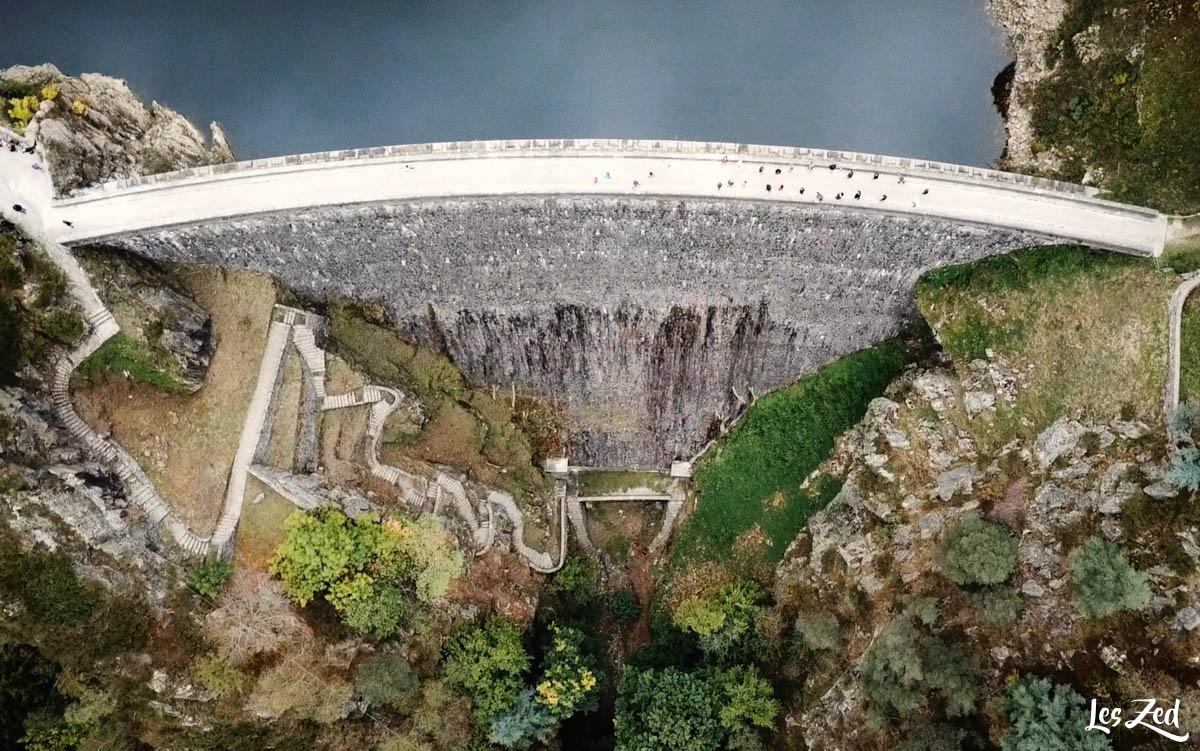 Si vous passez près de Saint-Etienne, je vous conseille ce site exceptionnel situé à 20 minutes seulement de la préfecture de la Loire. C’est une autre famille de voyageurs (les Marmots en vadrouille) qui nous ont fait découvrir ce barrage majestueux, et qui répond au « doux » nom du Gouffre d’Enfer ! 😱 Malgré cette appellation qui donne la chaire de poule, la balade est très belle, originale, avec des paysages à couper le souffle (malgré un temps maussade). Ce barrage – vieux de plus de 150 ans – offre une randonnée un peu sportive, mais qui reste accessible à toute la famille (sauf si vous avez le vertige) : il faudra gravir de nombreuses marches pour atteindre le sommet de la construction à 55 m de hauteur. De là haut, la vue est sensationnelle, et vous avez la possibilité de faire le tour du lac. Le retour peut se faire en passant par la forêt et ses séquoias géants.